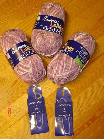 Sitten piti vielä käydä kuitenkin Robbarissa tutkimassa, kuinka paljon Huopanen on siellä halvempaa. Ja olihan se, peräti euron. Pöh! Siellä oli kuitenkin niin ihanan väristä Novitan Samos Lollipopia, että pakko oli ostaa kolme kerää. Tietty siis sellaista vanhan roosan kirjavaa! Jospa siitä vaikka keväistä huivia itselleni tekisin jossain vaiheessa.