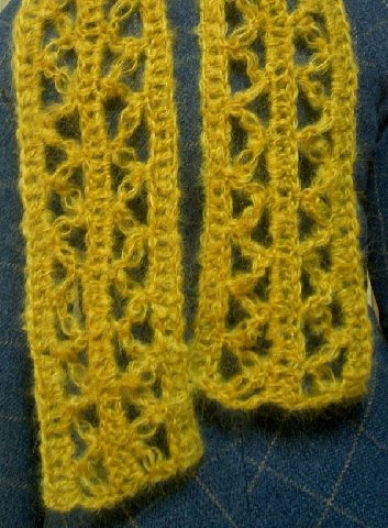 Esikon huivi valmistui kahdessa illassa ja on jo matkustanut pääkaupunkiin. Kuvan, melko surkean sellaisen, sentään ehdin iltasella ottaa.