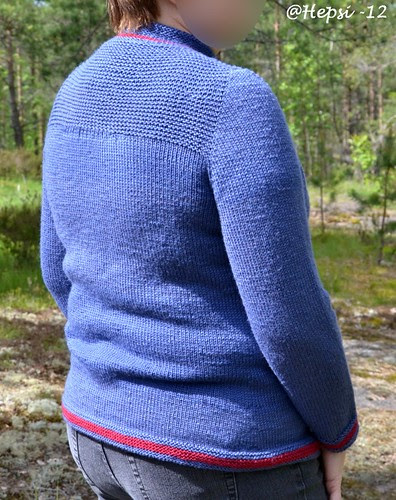 This jacket is again knitted top-down but this time by a new method for me, Contiguous. A very brilliant method. You can read more about it in Ravelry. I think I am going to use it also in future. I have already some patterns waiting in my queue.